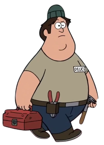 Deuce posee una apariencia muy similar a la de Soos Ramirez, solo que Deuce luce más "formal" y arreglado. Posee piel clara, una nariz pronunciada y cabello castaño, el cual es largo. Lleva una camiseta gris con una etiqueta que tiene su nombre escrito, pantalones azules, cinturón marrón y botas marrones. También lleva un gorro verde.