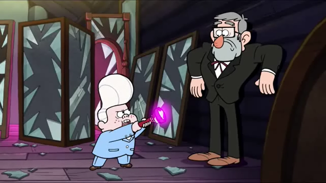 - Cuando Dipper y Mabel juegan ajedrez se puede ver que el tablero esta debajo del esqueleto de una criatura con caparazón, un cuerno, cola fibrosa y aletas traseras. Esto es una referencia a la serie de Phineas y Ferb en cuyo opening aparece una criatura muy similar aunque viva junto con la sita "Descubrir una Criatura que jamás existió" (Aunque dicha criatura ha llegado a aparecer en otros episodios).