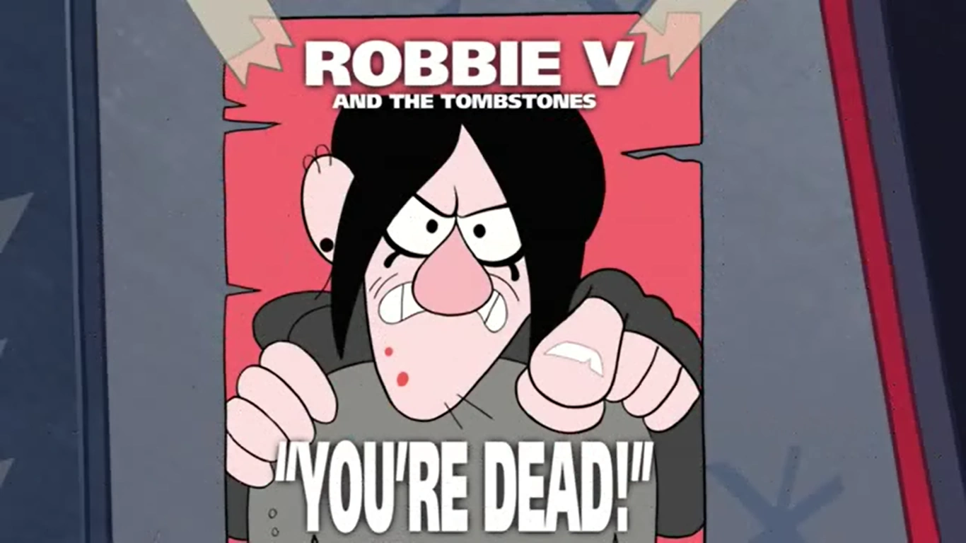 Luego se les ve a Wendy y a Dipper jugando un videojuego llamado "Los busca-pleitos" pero luego llega Robbie que estaba pegando unos volantes de su banda y le dice a Dipper que el jugara con Wendy, luego Dipper se va.