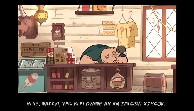 - Durante los créditos finales de este episodio, había un criptograma que decía "HLIIB, WRKKVI, YFG BLFI DVMWB RH RM ZMLGSVI XZHGOV". Una vez decodificado, dice "LO SIENTO, DIPPER, PERO TU WENDY ESTÁ EN OTRO CASTILLO". Esto se refiere a los juegos de Super Mario Bros., en los que, al derrotar a un Bowser falso, Toad le dice a Mario: "¡Gracias Mario! ¡Pero nuestra princesa está en otro castillo!"