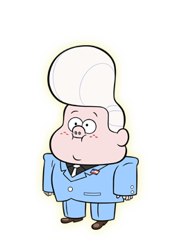 Он считает его своим другом, Мейбл, и уже пытался поцеловать его в «Мэйбле с качающейся рукой», «Гидеон Ассамес» и «Стэн для мэра».