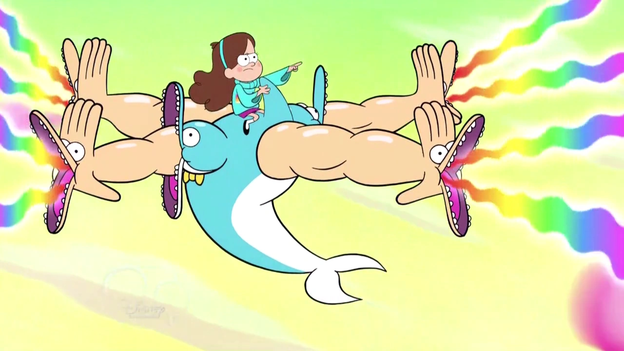 Мэйбл катается на Аошиме в одной из своих галлюцинаций. Он выглядит, как летающий дельфин с маленьким желтым галстуком-бабочкой и накачанными человеческими руками. После вращения у него появляется вторая голова, а из голов вылезают ещё по руке. Из их ладоней появляется глаза и пасти дельфина, стреляющие радужными лучами. В это время раздаётся звук, похожий на пение дельфина.