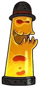 Внешне демон похож на лавовую лампу в форме цилиндра,с утолщенной нижней частью, полную жёлтой жидкости с оранжевыми пузырьками. Он имеет два темно-оранжевых сгустка лавы, напоминающие глаза и зубчатый рот с выпирающей вперед нижней челюстью. На голове у Лампы темно-серый котелок с тёмно-красной лентой вокруг него.