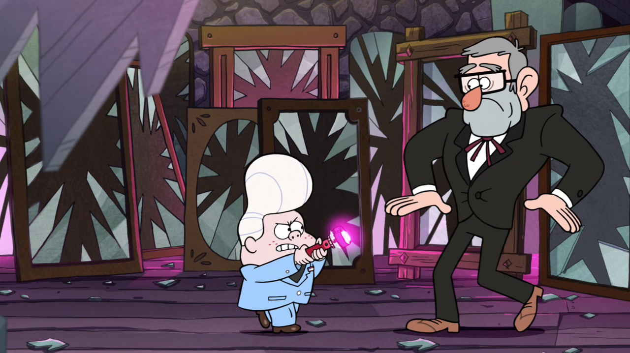 Стэн прячется в зеркальном лабиринте, но Гидеон разбивает большую часть зеркал. Стэн не выдерживает, появляется перед Гидеоном и требует заплатить за разбитые зеркала. Гидеон угрожает Стэну фонариком, но Диппер и Мэйбл добираются к подмышкам Гидеона и щекочут его. Гидеон от смеха буквально катается по полу, и Стэн просто выкатывает его из Хижины Чудес. Диппер и Мэйбл возвращают свои прежние размеры. Они разбивают кристалл, чтобы никто больше не смог им воспользоваться. Но они совсем забыли про Суса!