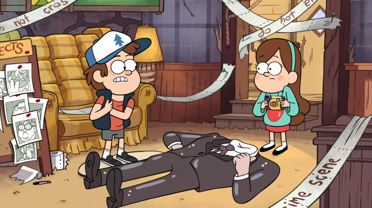 - Судя по времени на камерах в здании Сплетника Гравити Фолз, убийство воскового Стэна произошло в субботу.