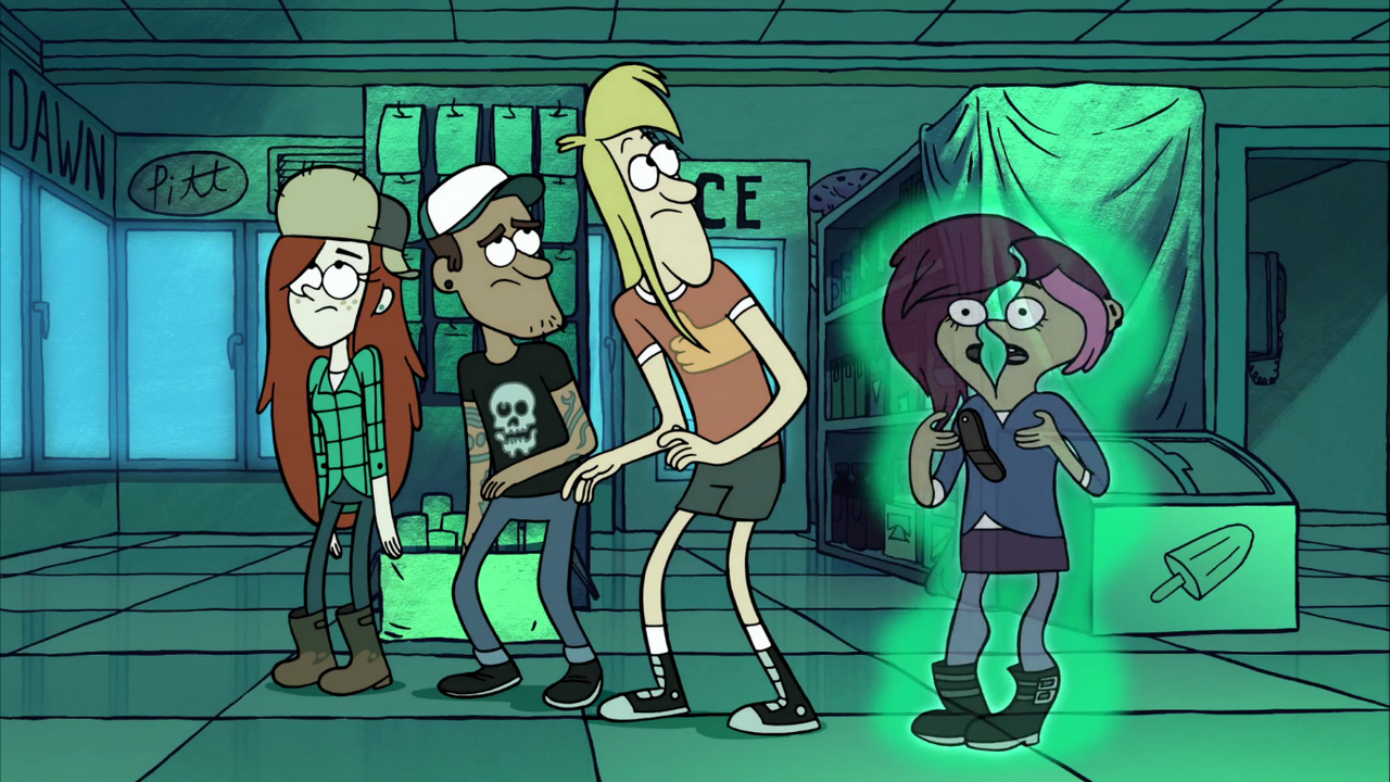Диппер и Вэнди прячутся в шкафчике. Немного подумав, Диппер понимает причину происходящего — призрак нападает на всех, кто ведёт себя, как типичный подросток. Диппер объясняет призраку, что он ещё не подросток. Тогда призрак открывает свой истинный облик — Ма и Па Даскертон. Призраки рассказывают, что когда они были живы, подростки вечно их изводили. Ма и Па решили не пускать их в свой супермаркет. Тогда подростки включили под окнами магазина рэп. Это шокировало Ма и Па, и их сразил сердечный приступ.