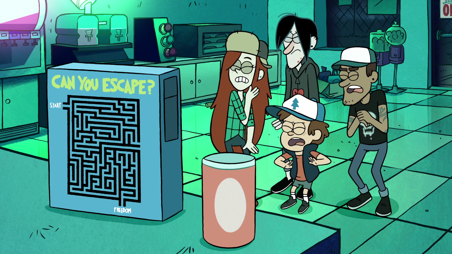 Все начинают рассматривать заброшенный супермаркет. Вэнди включает свет и начинается веселье. Мэйбл находит запрещённые в Америке «Улыбашки», объедается ими и погружается в яркие галлюцинации.