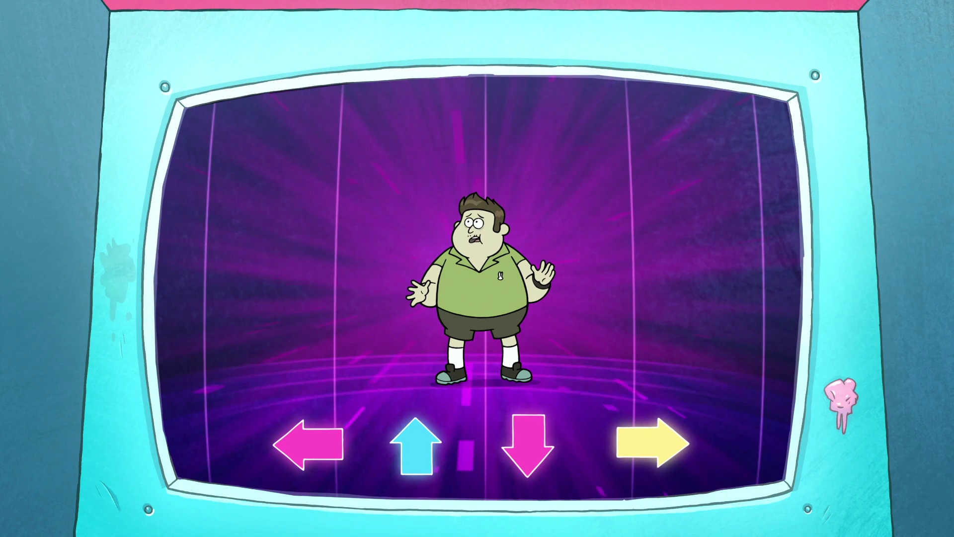 В эпизоде «Стеснённые ситуацией» на автомат с этой игрой указал Диппер, чтобы отвлечь друзей Вэнди. Они тут же побежали к нему, и Томпсон начал неумело танцевать под ободрительные возгласы других подростков. После того, как кампания «разбудила» призраков-владельцев магазина, Томпсон попадает внутрь автомата с видеоигрой. Он пытается уворачиваться от падающих стрелочек, но в итоге его засыпает с головой. Когда Диппер станцевал Барашкин танец, призраки отпустили всех, и автомат упал обратно на пол.
