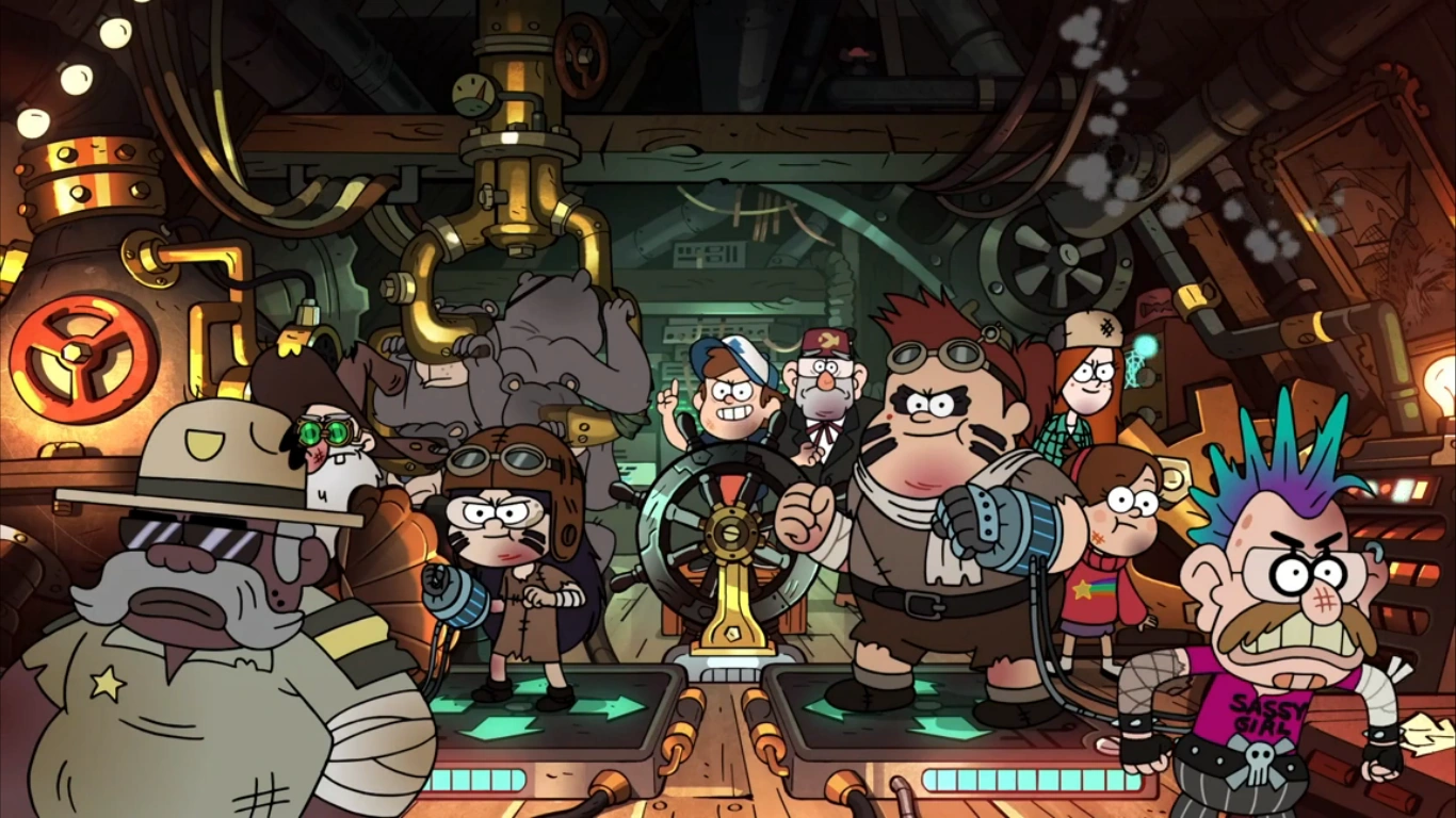 В эпизоде «Странногеддон (часть 3): Вернём Гравити Фолз» нижние панели от Танцевальной революции используется в Хижино-троне. На левой стоит Гренда, а на правой — Кэнди. Вместе девочки управляют руками и ногами робота.