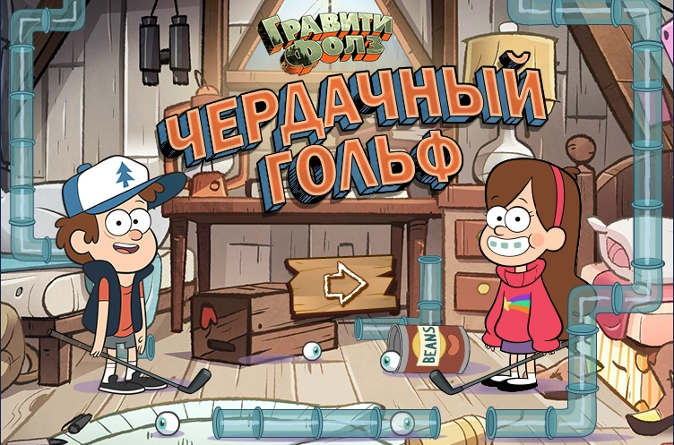 Чердачный гольф (ориг. Attic Stuff Golf) — это онлайн игра на официальном сайте Гравити Фолз, основанная на мини-гольфе. Диппер и Мэйбл одеты как в эпизоде «Ковёр преткновения».