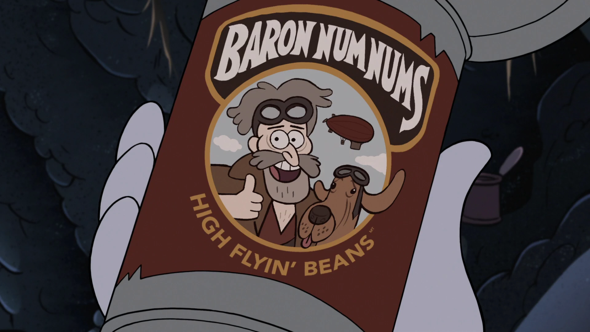 Baron Num Nums High Flyin' Beans is a brand of canned beans that Dipper, Mabel, Wendy, and Soos discover in "Into the Bunker."