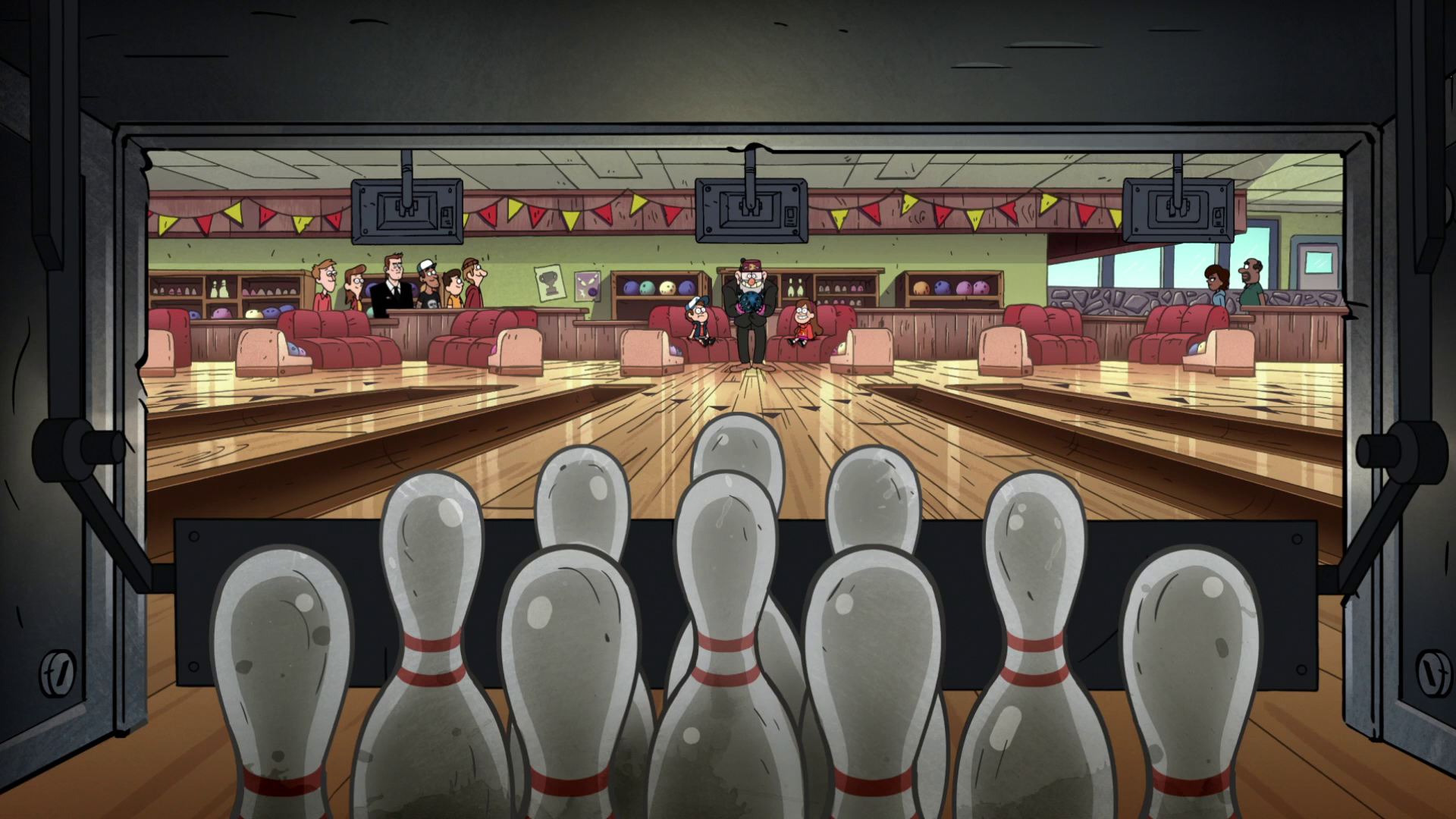 The bowling alley is a sporting area located next to a book store near the center of Gravity Falls.