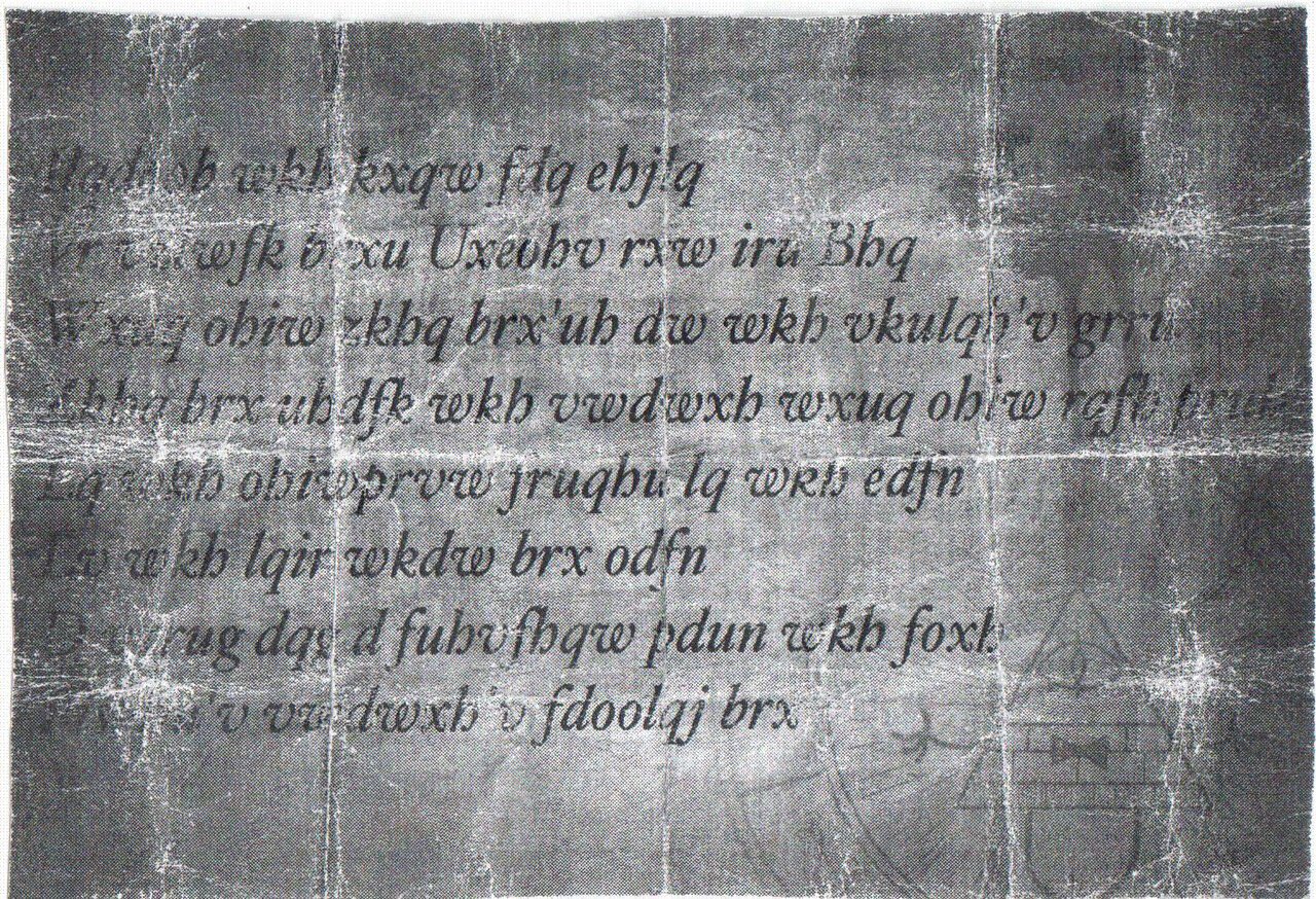 The poster also contains an encrypted message:
