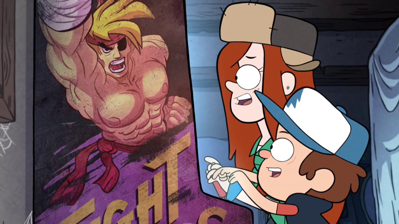 - ↑ "Fight Fighters." Zach Paez, Alex Hirsch (writers) & John Aoshima (director). Gravity Falls. Disney Channel. September 14, 2012. No. 10, season 1.