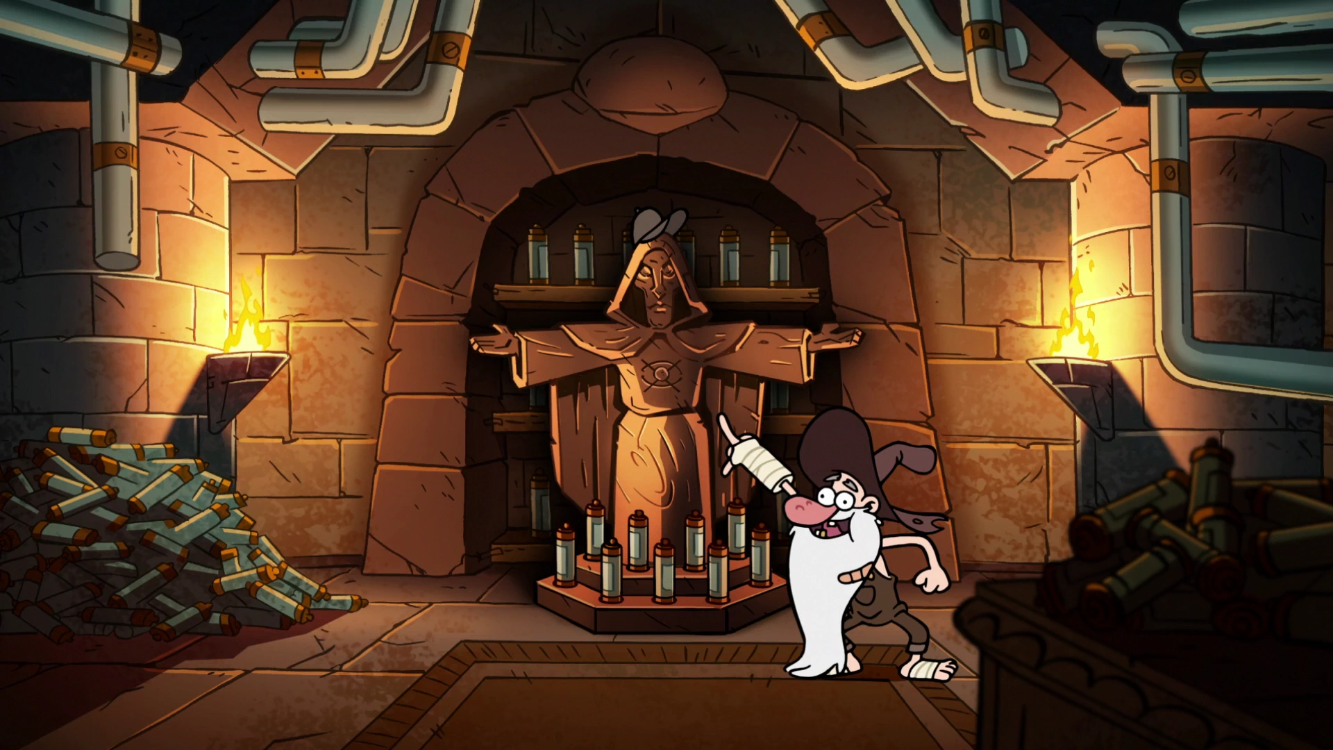 It appears in "Society of the Blind Eye." The society members use it to perform their normal routine, erasing the memory Lazy Susan had of seeing the supernatural. Shortly afterward, the location of this place is discovered by Dipper, Mabel, Soos, Wendy, and Old Man McGucket. Dipper and the group are able to stop the society members by wiping away the members' memories of the place and anything else involving the Blind Eye Society.