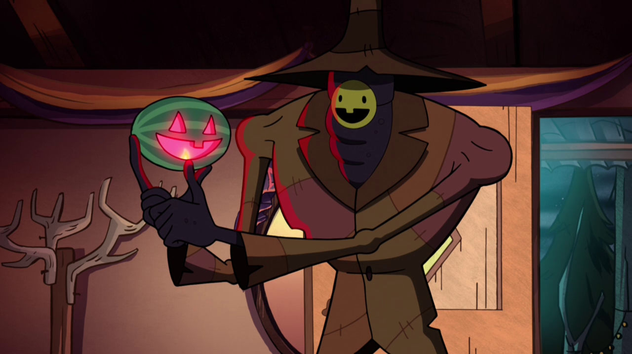 Traditionally, jack-o'-lanterns are made out of pumpkins. But for Summerween, jack-o'-melons are made with watermelons, hence their name. Jack-o'-melons are seen throughout the town of Gravity Falls, where residential homes are decorated with them in spirit of the holiday.