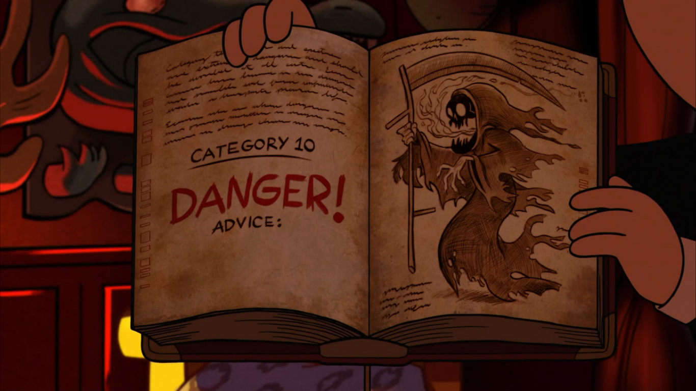 - ↑ 4.0 4.1 4.2 "Scary-oke." Matt Chapman, Jeff Rowe, Alex Hirsch (writers) & Rob Renzetti (director). Gravity Falls. Disney Channel. August 1, 2014. No. 1, season 2.