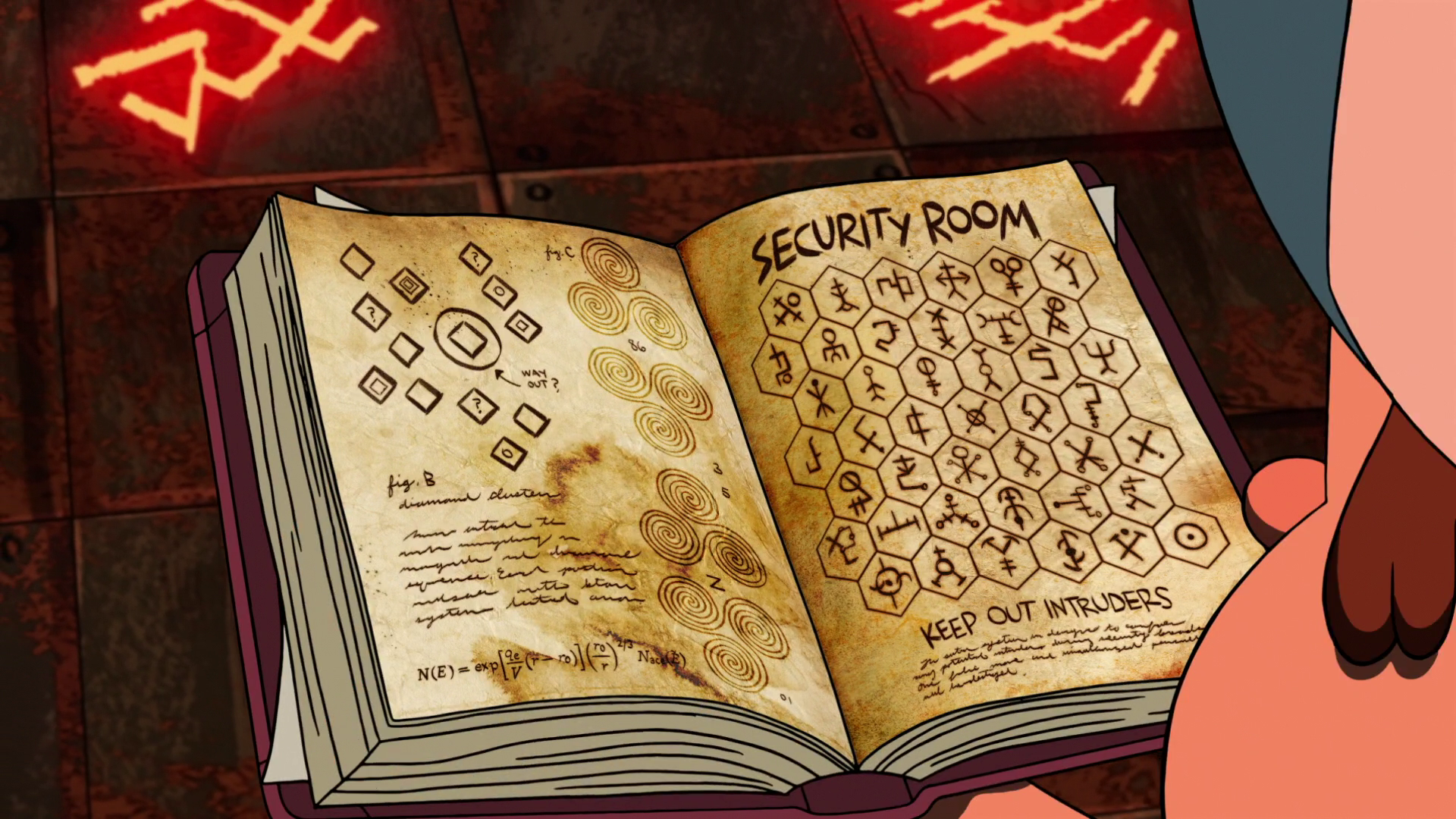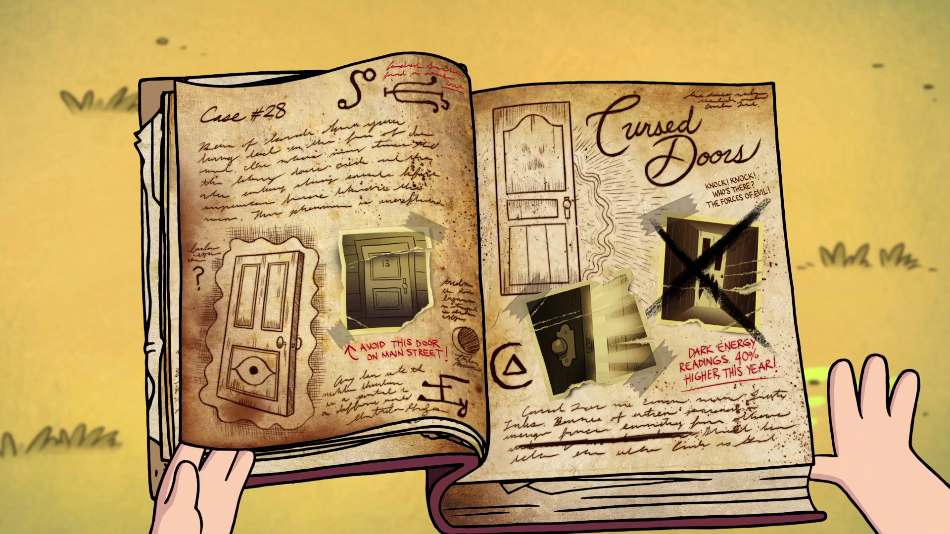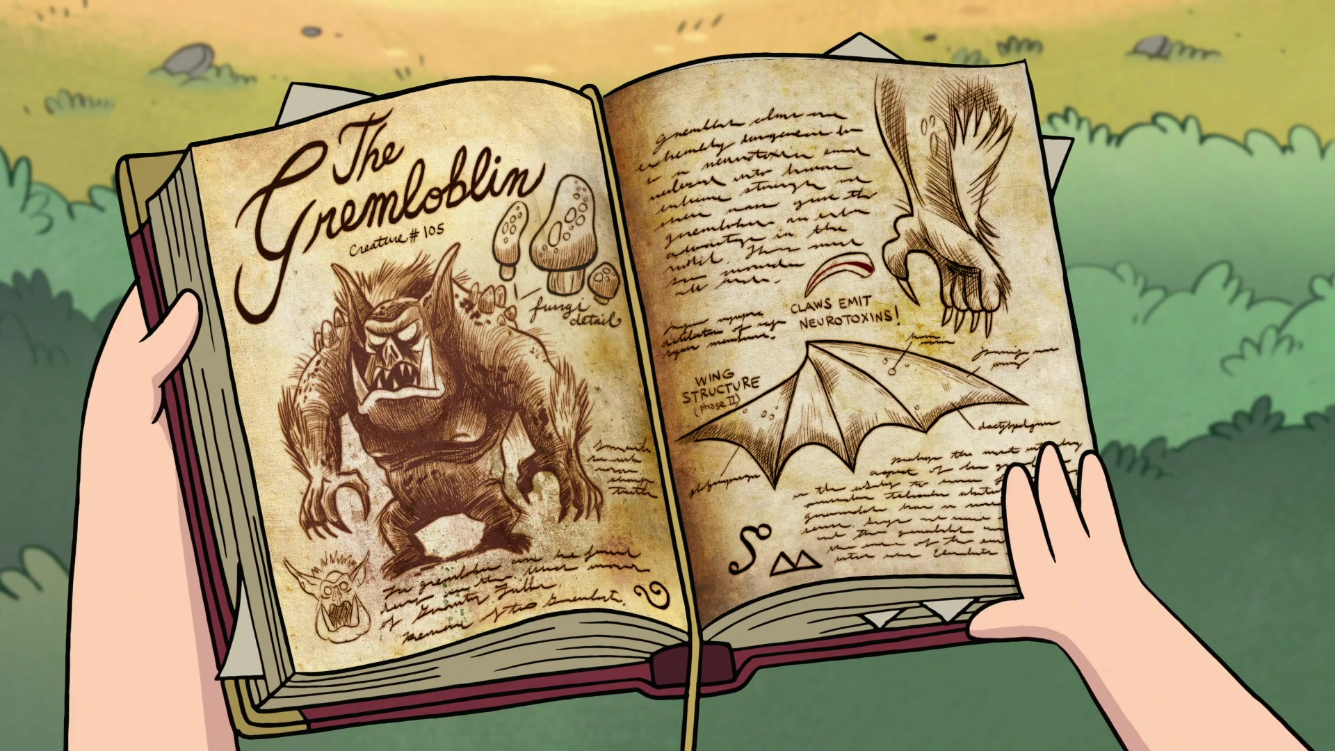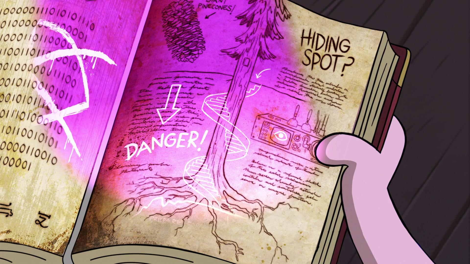 Journal 3 continues to assist Dipper in his encounters with the supernatural, including guiding him into a cave behind a waterfall in "The Legend of the Gobblewonker," during which he, Mabel and Soos flee from Old Man McGucket's Gobblewonker robot.
