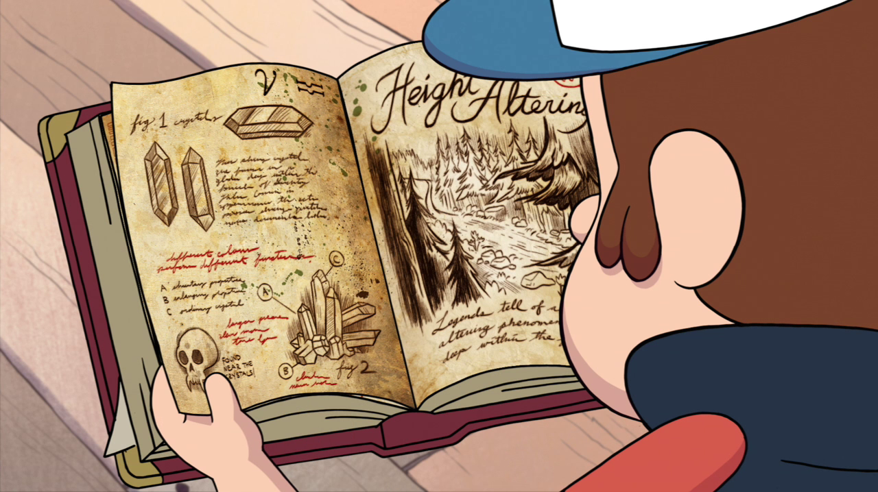 Dipper reads about height-altering crystals in "Little Dipper," wishing to use them to make himself taller, and checks on its position in his vest pocket as Gideon Gleeful interrogates him about how he came upon the crystals. Later, Dipper uses the journal to help him catch a Gremloblin in "Boss Mabel."