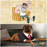 This trailer introduces Grunkle Stan and the Mystery Shack, encompassing clips from the first five episodes like with the one for the twins. Stan is described as the owner and tour guide of the Mystery Shack and the announcer also informs viewers to beware as they may not believe their eyes as to who he may be (showing then him going behind the vending machine as we see in "Tourist Trapped"). This trailer also includes an alternate take of the World's Most Distracting Object line. This trailer was originally thought lost as no uploads of it ever were up online. It eventually was uploaded to Vimeo in September 2020, by editor and TV promo maker Bill Weinman, who likely was its creator. [1] [2]
