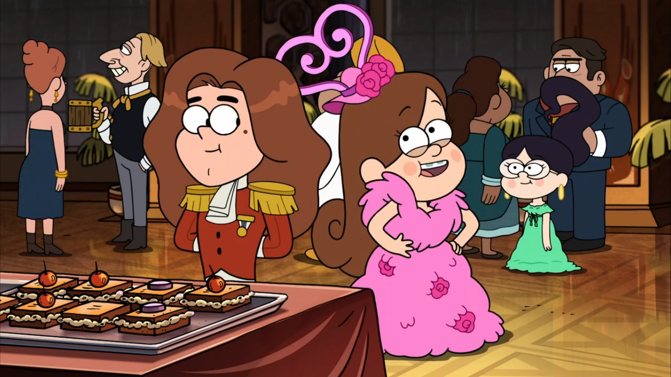 In "Northwest Mansion Mystery," Mabel, Candy, and Grenda watch a report on the upcoming Northwest Fest with awe. When Pacifica comes to the Shack asking Dipper for help, Mabel convinces Dipper to do so, in exchange for tickets for her and her friends. Once they get to the party, Mabel and her friends enjoy the fancy things on offer. Shortly after, Marius von Fundshauser catches their eyes. Though the three agree at first not to try and date Marius, Mabel and Candy decide to flirt with him, but leave Grenda out, due to her aggressive style of flirting. Mabel gets confused that he's Australian because he's Austrian. Mabel and Candy's attempts to attract Marius leads to them fighting amongst themselves. Grenda finds out they had left her out and flirts with Marius out of spite. When the Ghost of Northwest Manor turns the guests into wood, Mabel and her friends are shown to have been arguing at the time. After the ghost departs, they reconcile, and Mabel and Candy support Grenda when Marius shows interest in her. When Candy calls "bridesmaid," Mabel calls "co-bridesmaid."