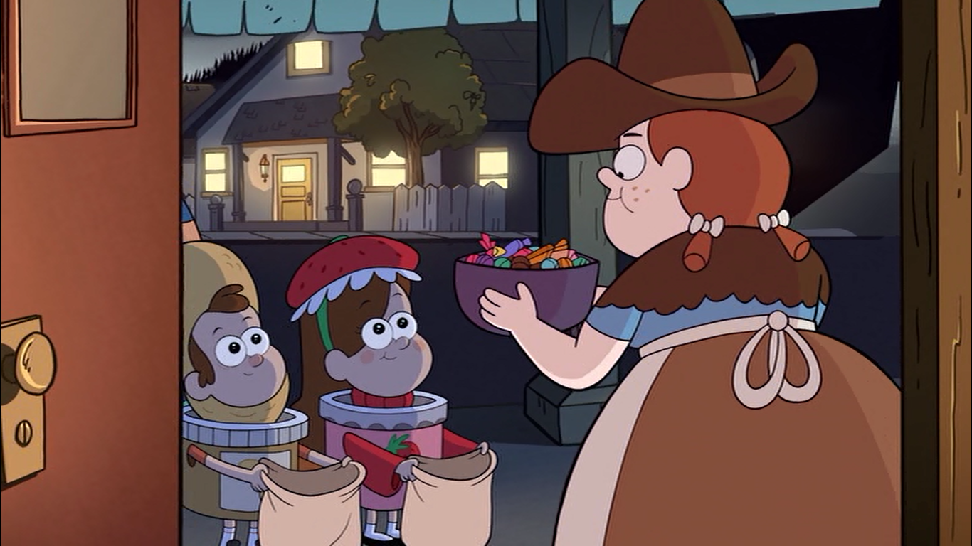 Mabel and Dipper go trick-or-treating.