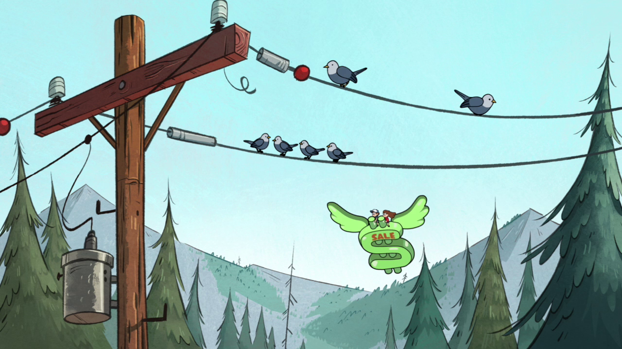 - ↑ "Land Before Swine." Matt Chapman, Alex Hirsch (writers) & John Aoshima (director). Gravity Falls. Disney Channel. June 28, 2013. No. 18, season 1.