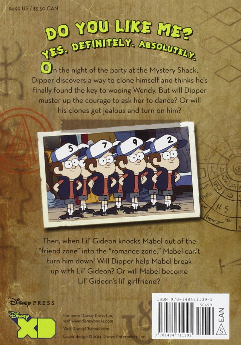 On the night of the Party at the Mystery Shack, Dipper discovers a way to clone himself and thinks he's found the key to finally wooing Wendy. But will Dipper muster up the courage to ask her to dance? Or will his clones get jealous and turn on him? Then, when Lil' Gideon knocks Mabel out of the "friend zone" and into the "romance zone," Mabel can't turn him down! Will Dipper help Mabel break up with Lil' Gideon? Or will Mabel become Lil' Gideon's lil' girlfriend? Readers will love this 112 page chapter book filled with black-and-white art from the show.