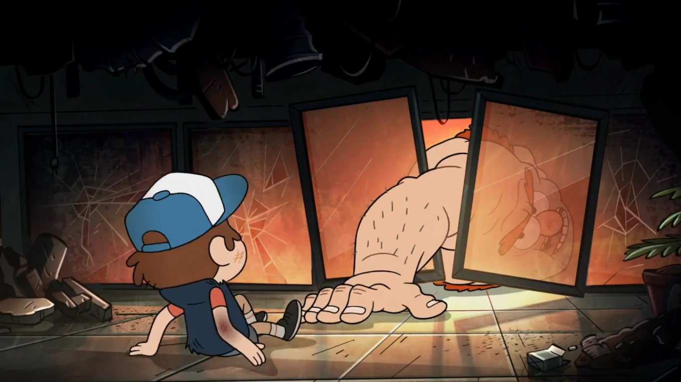 Dipper escaping from the monstrosity.