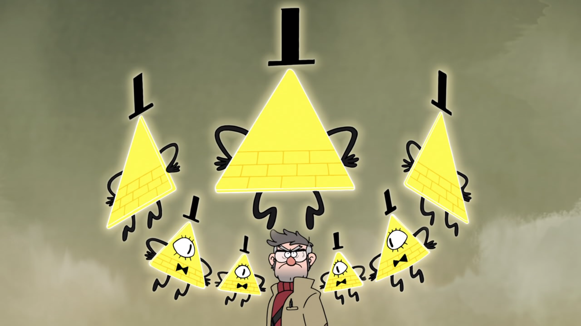 When Stanford confronts Bill for lying to him, the silhouettes of Pyronica, Keyhole, and 8 Ball are seen laughing in anticipation of showing Earth "how to party." They later show up during the events of Weirdmageddon.