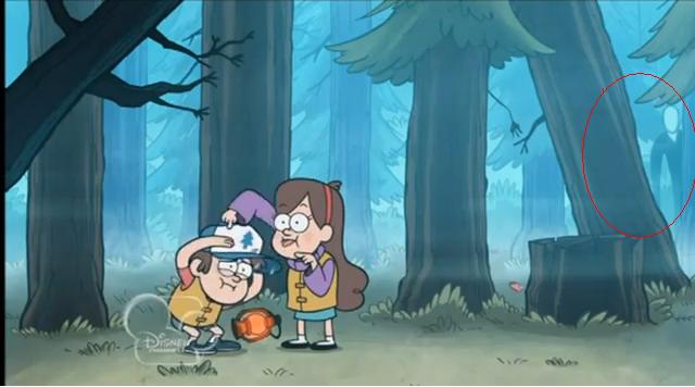 Shortly after the episode aired, a fake screenshot began to spread, showing what appeared to be a figure that looked like the fictional supernatural character Slenderman in the background of the scene where Mabel is poking Dipper. Due to Slenderman's popularity at the time, this resulted in interest for the show to grow as people tried to see if he really had appeared in of all places, a cartoon on Disney Channel.[5]