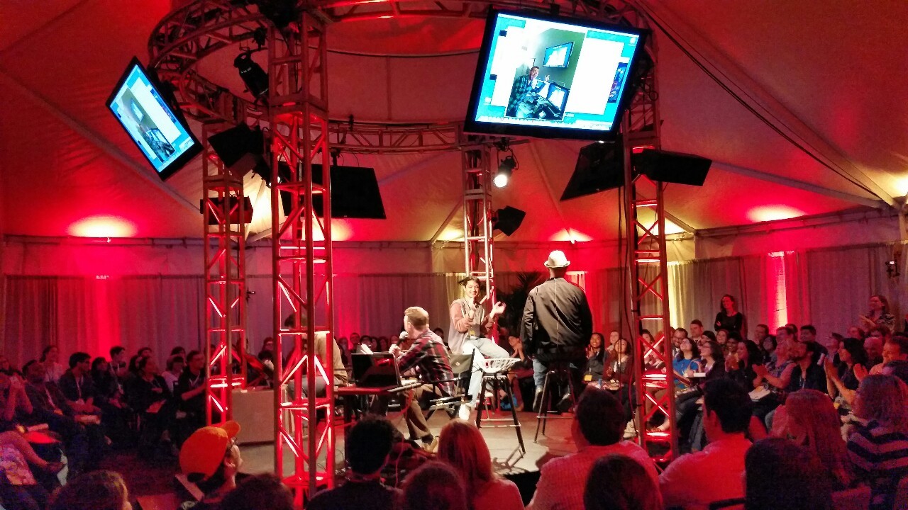 Alex Hirsch, Matt Braly and Ian Worrel revealing the hoax at the 2014 Creative Talent Network Expo