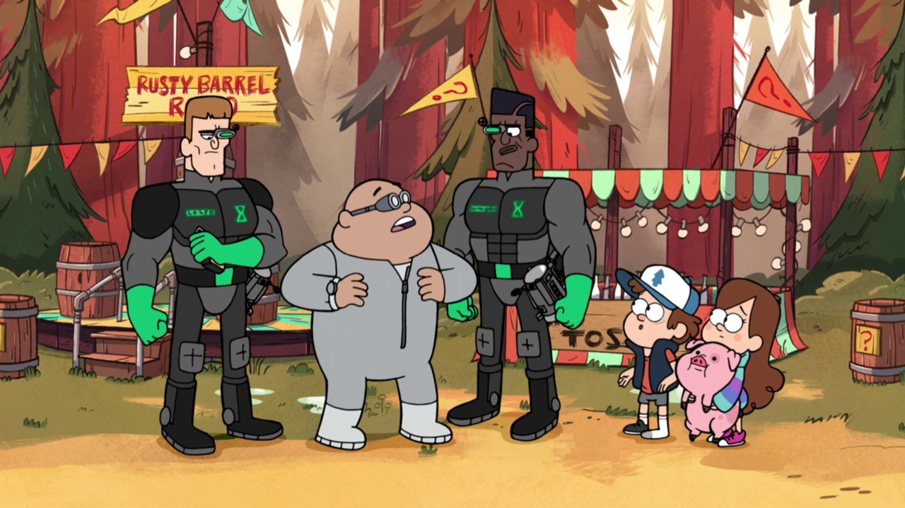 Stan Pines then dares the agents to dunk him in the water, insulting their hair styles in the process. Lolph pulls out a laser arm cannon and fires at the target of the dunk tank, dunking Stan as he destroys the target. As everybody cheers at Stan's humiliation, they travel back to the future. They are then present as the Time Baby orders Blendin to clean up all the anomalies.